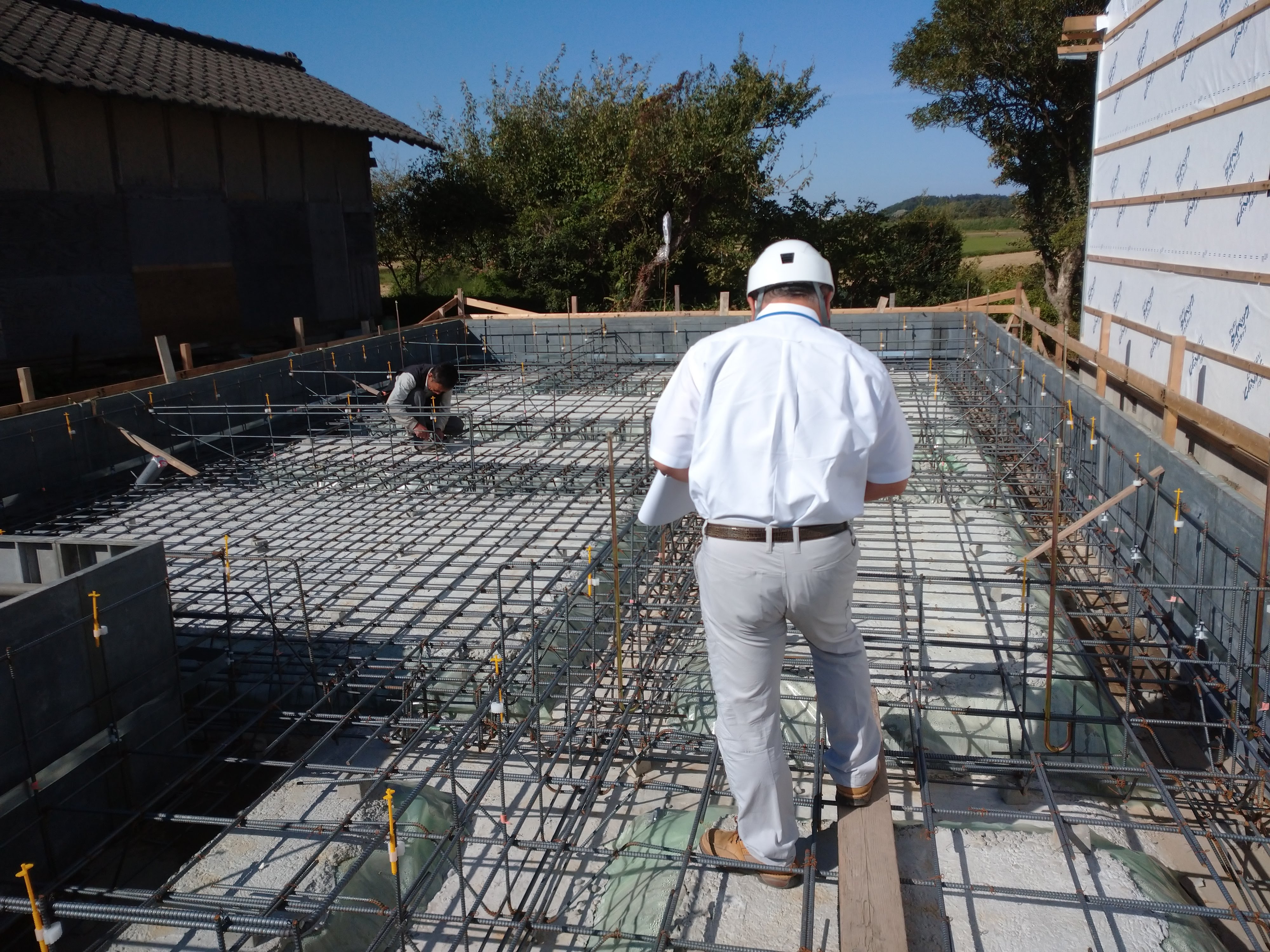 「しっかり鉄筋が組まれていますね」と、お褒めの言葉を頂きました。