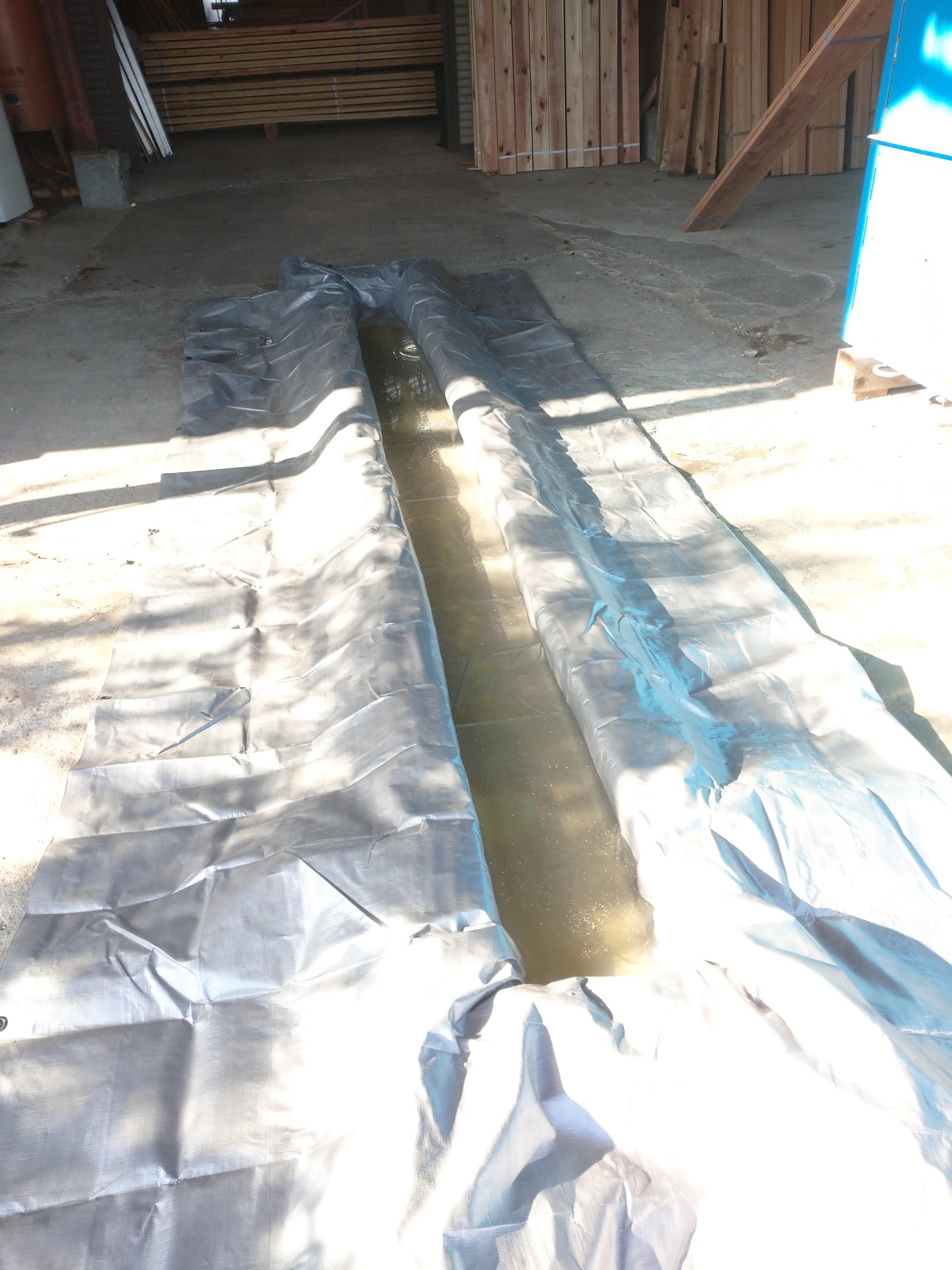 ↓ビニルシートでプールをつくり、特殊な粉を溶け込ませて・・・